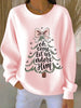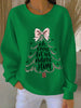 Women's “Oh Come Let Us Adore Him” Print Casual Ribbed Round-Neck Sweatshirt